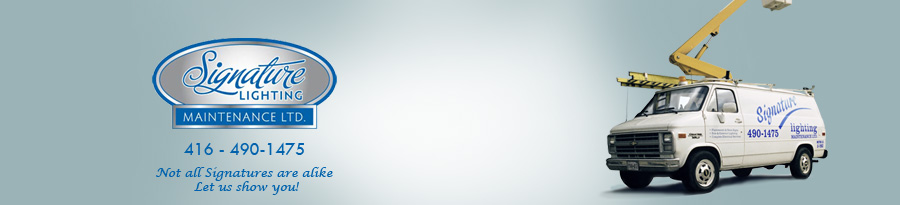 Founded in 1995 on the principles of integrity and quality, Signature Lighting Maintenance Ltd. has a well established reputation in the Greater Toronto area (G.T.A.). A full-service company, with a large service and maintenance division, we are ready to respond to your needs. From troubleshooting to ongoing maintenance to emergency service, our staff are trained and experienced to provide solutions to any situation you may encounter.